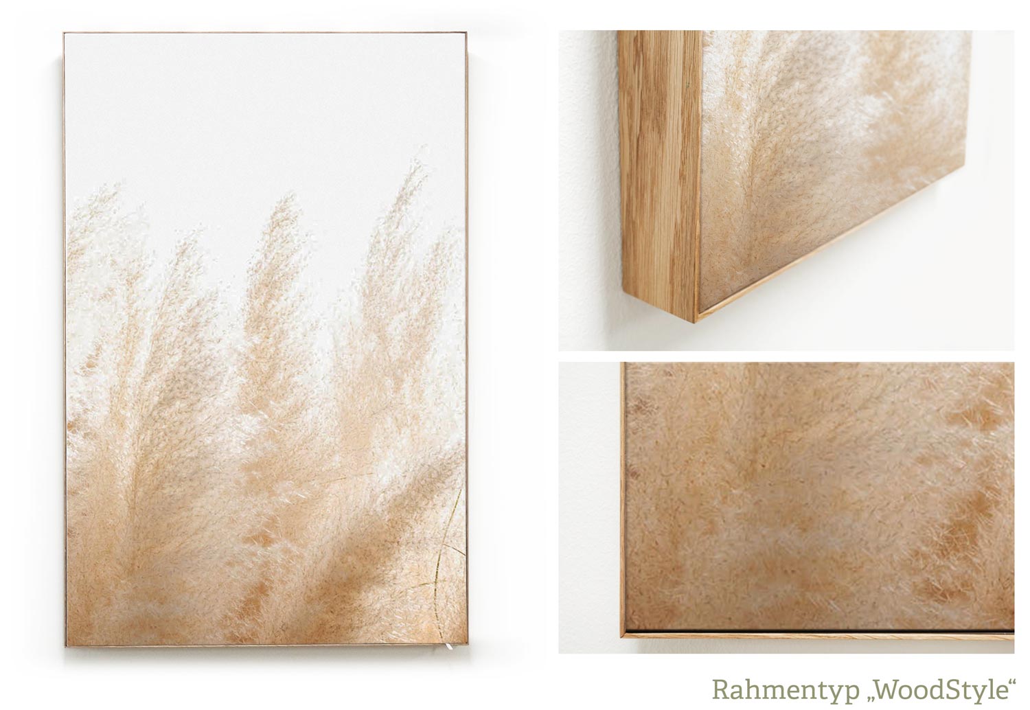 | WoodStyle mit edlem Eiche-Echtholz-Rahmen mit einer Bautiefe von 5 cm In dieser Bauart sind die Akustikbilder in einem edlen Echtholz-Rahmen eingefasst. Zur Auswahl stehen Eiche, Buche oder Nuss. Das Motiv ist nur von vorne zu sehen. Außerdem ist frontal eine 3 mm dicke Holzkante sichtbar. Die Bautiefe von 5 cm hat den Vorteil, dass die tiefen Frequenzen stärker absorbiert werden als im CanvasStyle. Auch hierbei handelt es sich um einen sogenannten Textilwechselrahmen, so dass später das Motiv zu deutlich geringeren Kosten als eine vollständige Neuanschaffung des Akustikbildes getauscht werden kann. Die Bezüge sind abnehmbar und waschbar. In dieser Bauform ist die Größe wählbar bis zu einer Länge von 2,00 m bei einem Gegenstück von bis zu 2,00 m. |