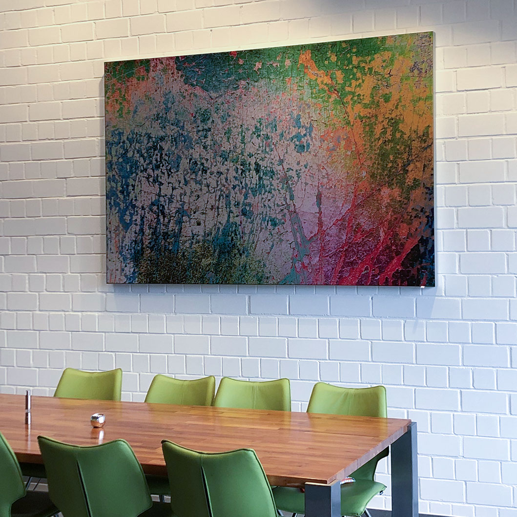 Designidee: Hier bieten sich beruhigende Motive in sanften Farben an – idealerweise aus einem gemeinsamen Bildkonzept. Das stärkt die visuelle Ruhe im Raum und gibt Orientierung. Auch das Thema Zugehörigkeit spielt bei Teamräumen eine Rolle – z. B. mit Stadtmotiven des Firmensitzes.