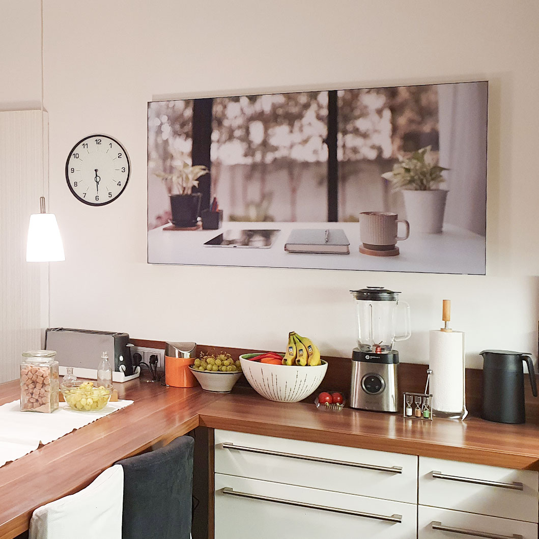 Designidee: Lebendige, farbige Motive wie Felder, Früchte oder Naturstimmungen regen die Sinne an und bringen Wärme an den Tisch. Auch Familienfotos oder Reisen sind beliebt – besonders als Akustikbild mit eigenem Motiv.