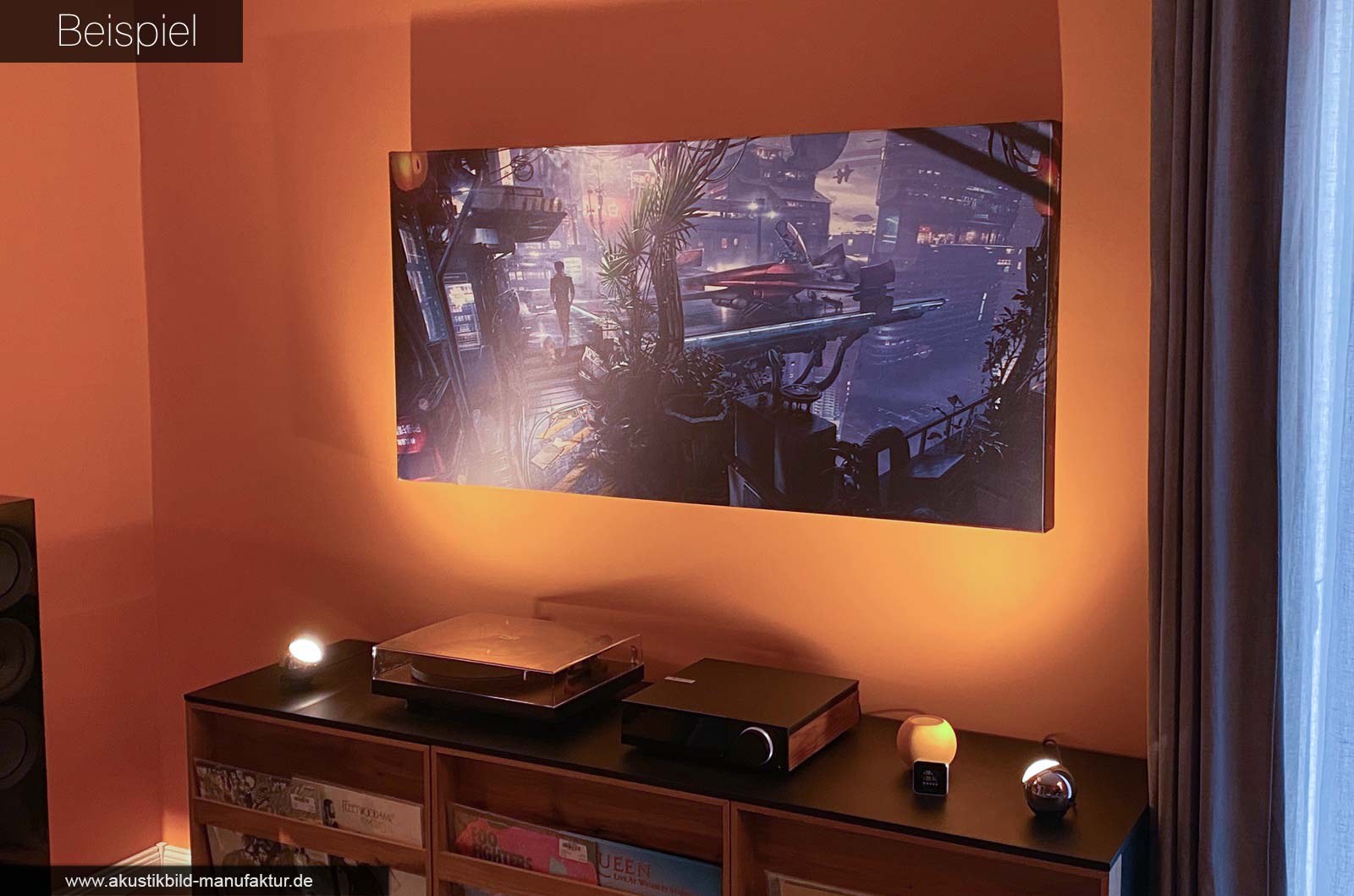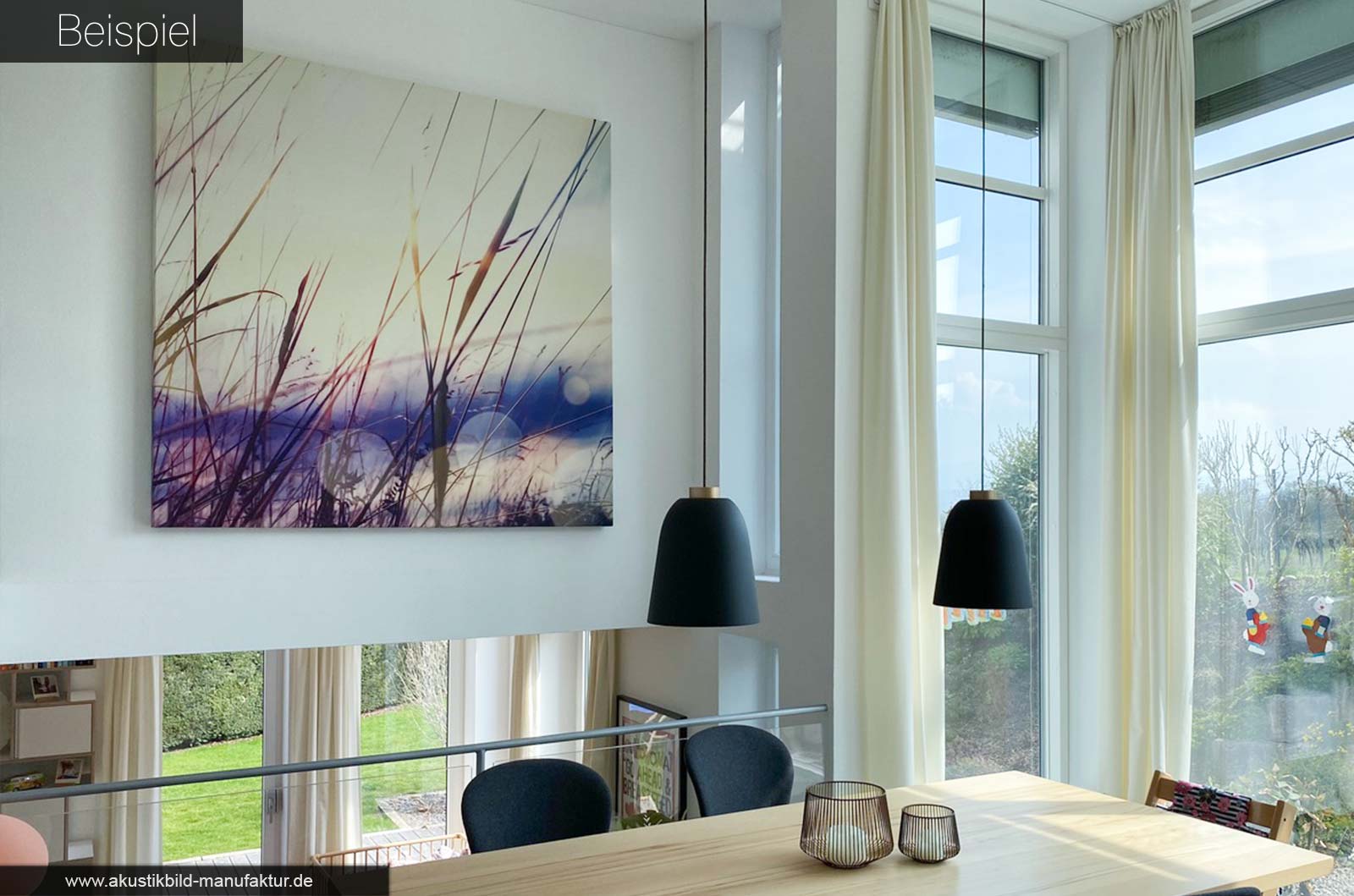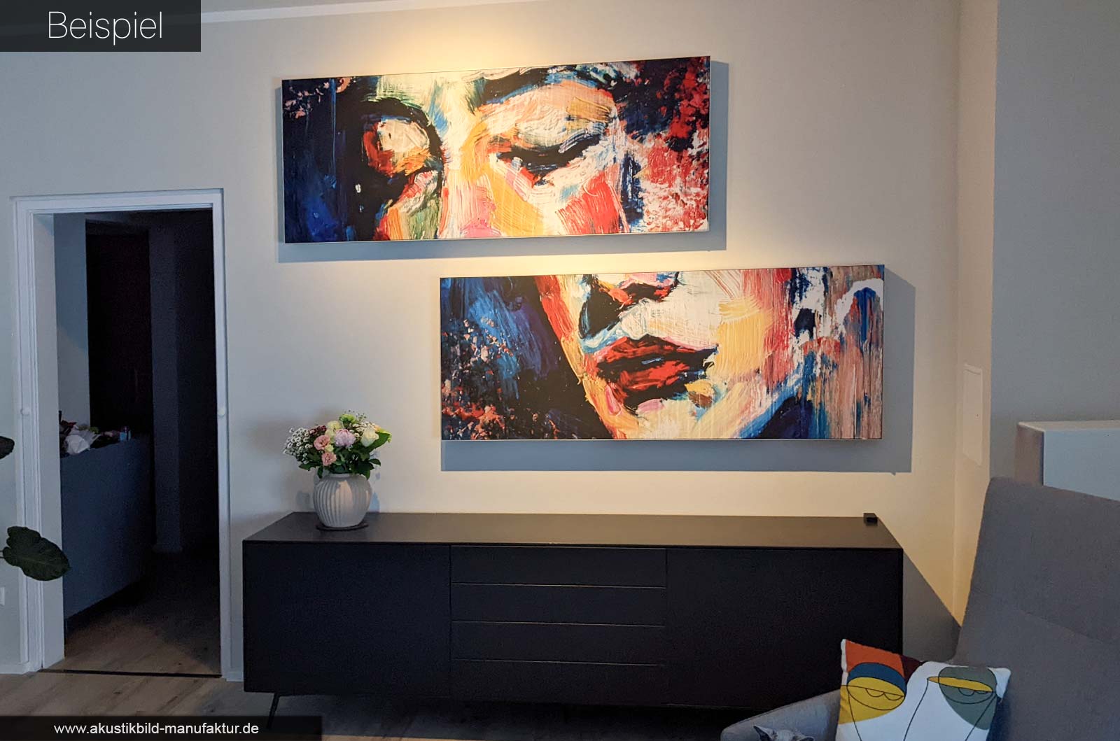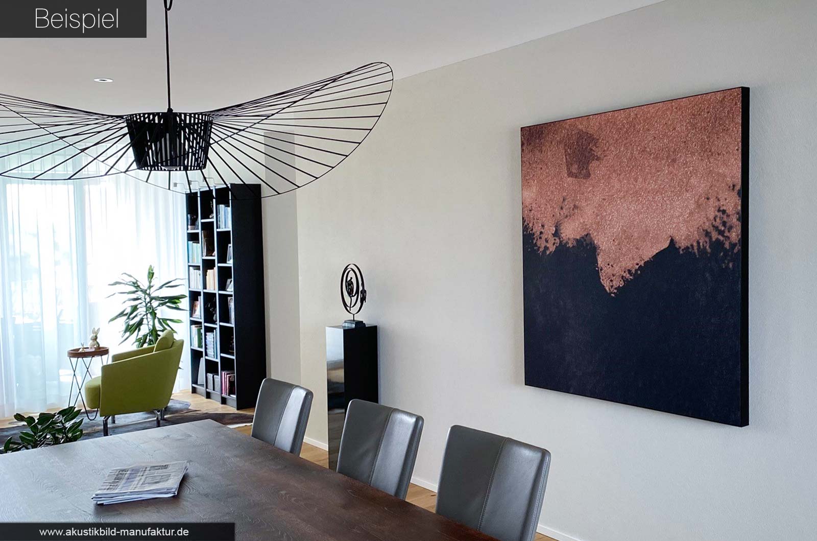 Blättern Sie durch die Beispiele, lassen Sie sich inspirieren – und stellen Sie sich vor, wie Ihr eigener Raum mit einem Akustikbild aussehen könnte. Gern unterstützen wir Sie mit Inspiration in einem kurzen Austausch oder einer handfesten Look-Visualisierung.