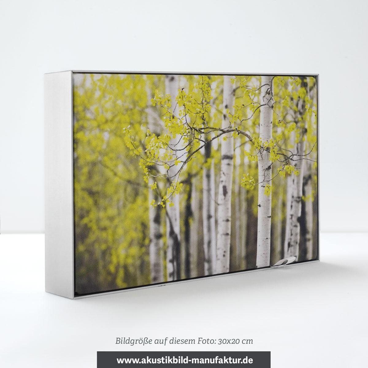 Das Motiv ist von einem schicken Aluminiumrahmen eingefaßt. Die Bautiefe beträgt 5 cm bzw. 6 cm (abhängig von der Größe). Auch eine Ausführung mit 8 cm ist möglich.
