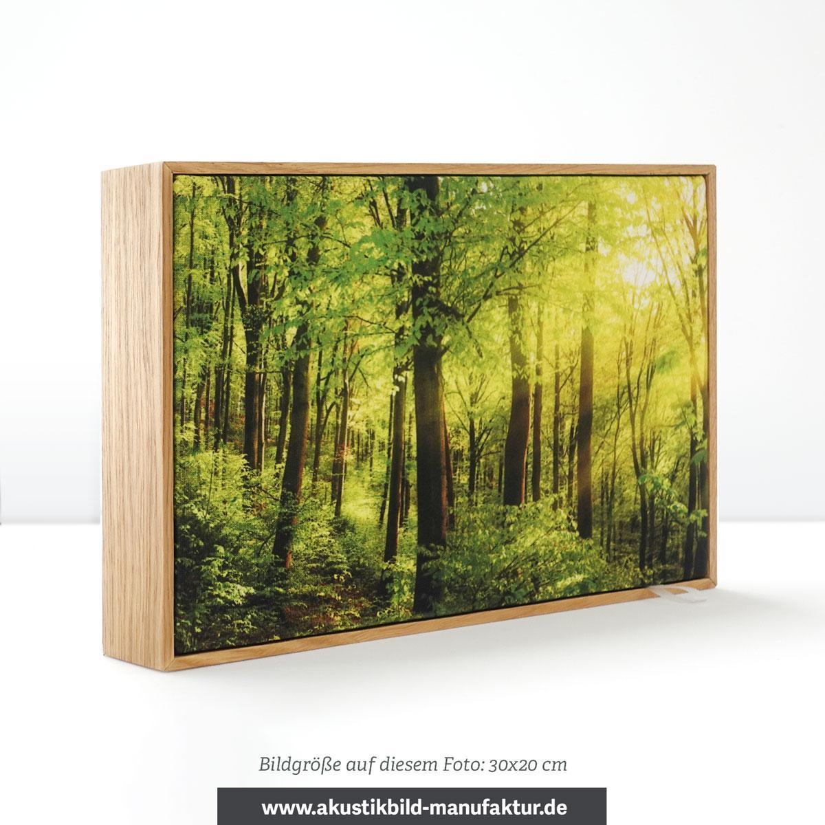 Das Motiv ist von einem edlen Echtholzrahmen in Eiche eingefaßt. Die Bautiefe beträgt 5 cm (abhängig von der Größe).