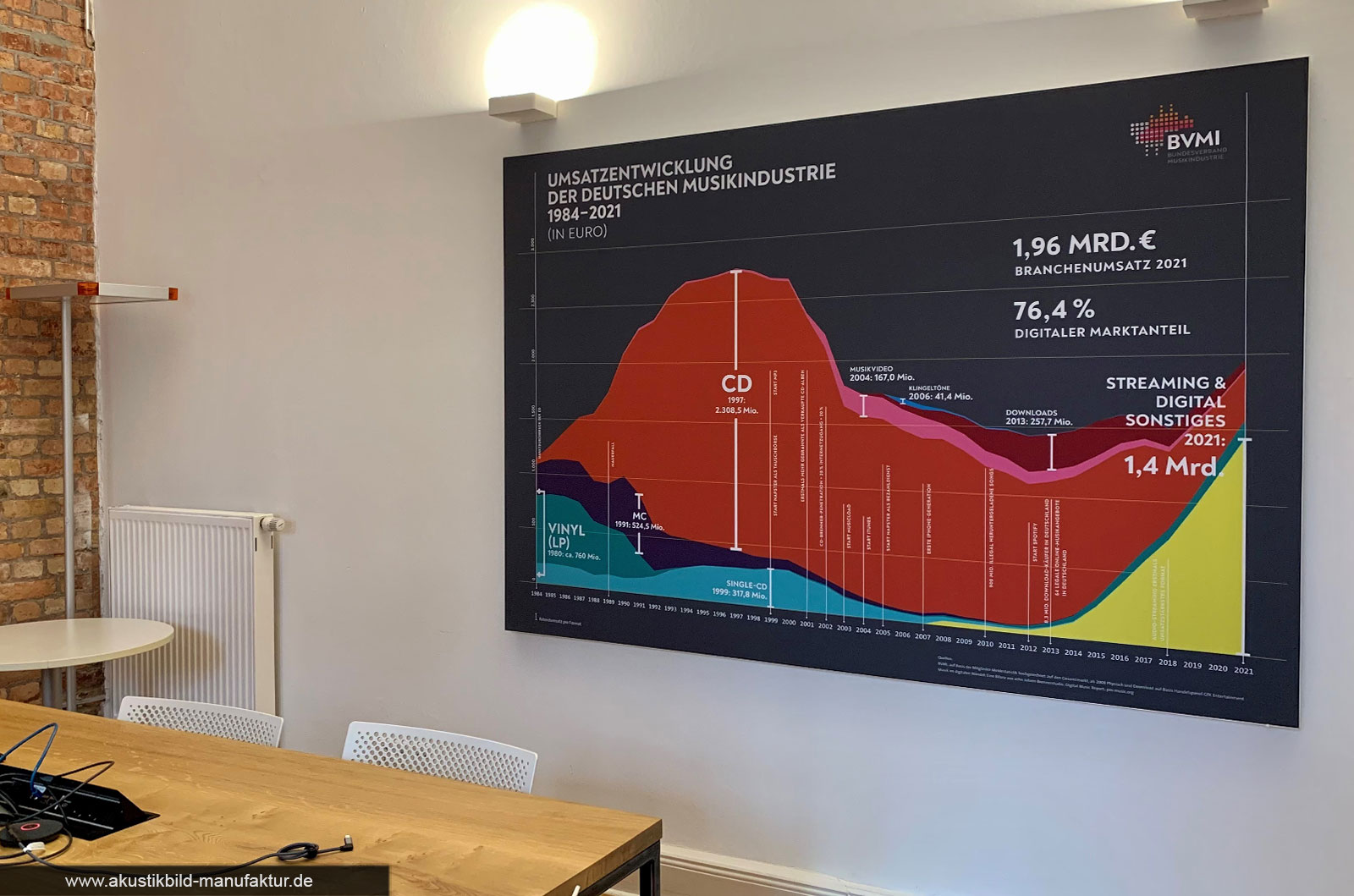 Konkrete Raumdesigns mit Schallschutzbild im Wartezimmer, im Wohnzimmer, im Besprechungsraum, im Flur, im Behandlungsraum und vielen mehr.