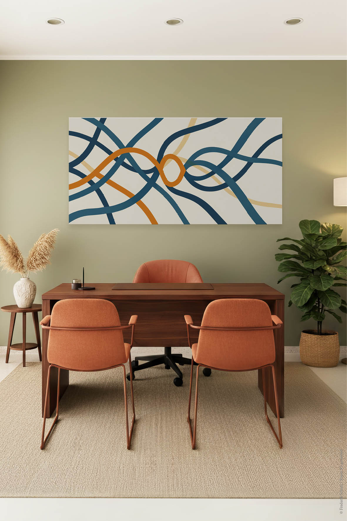 Am besten platzieren Sie das Akustikbild gegenüber oder hinter der Schallquelle. Typische Orte sind gegenüber oder hinter einem Schreib- oder Esstisch. Noch besser wirken mehrere Elemente an verschiedenen Wänden. Je besser die Platzierung, desto größer der Effekt – besonders, wenn nur ein Bild geplant ist.