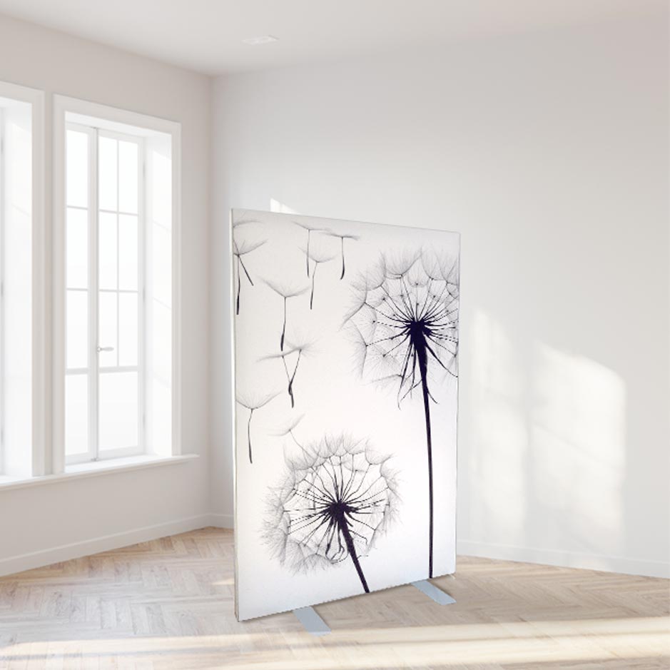 Trennwände mit Akustikfunktion erfüllen eine Doppelfunktion: Sie wirken als zonierendes Element und reduzieren gleichzeitig den Schall im Raum. Sie erhalten die Trennwand in drei Varianten: 1) mit einem Motiv aus unserem Sortiment, 2) mit einem Wunschmotiv oder 3) als Akustikpinnwand zum Hinstellen.