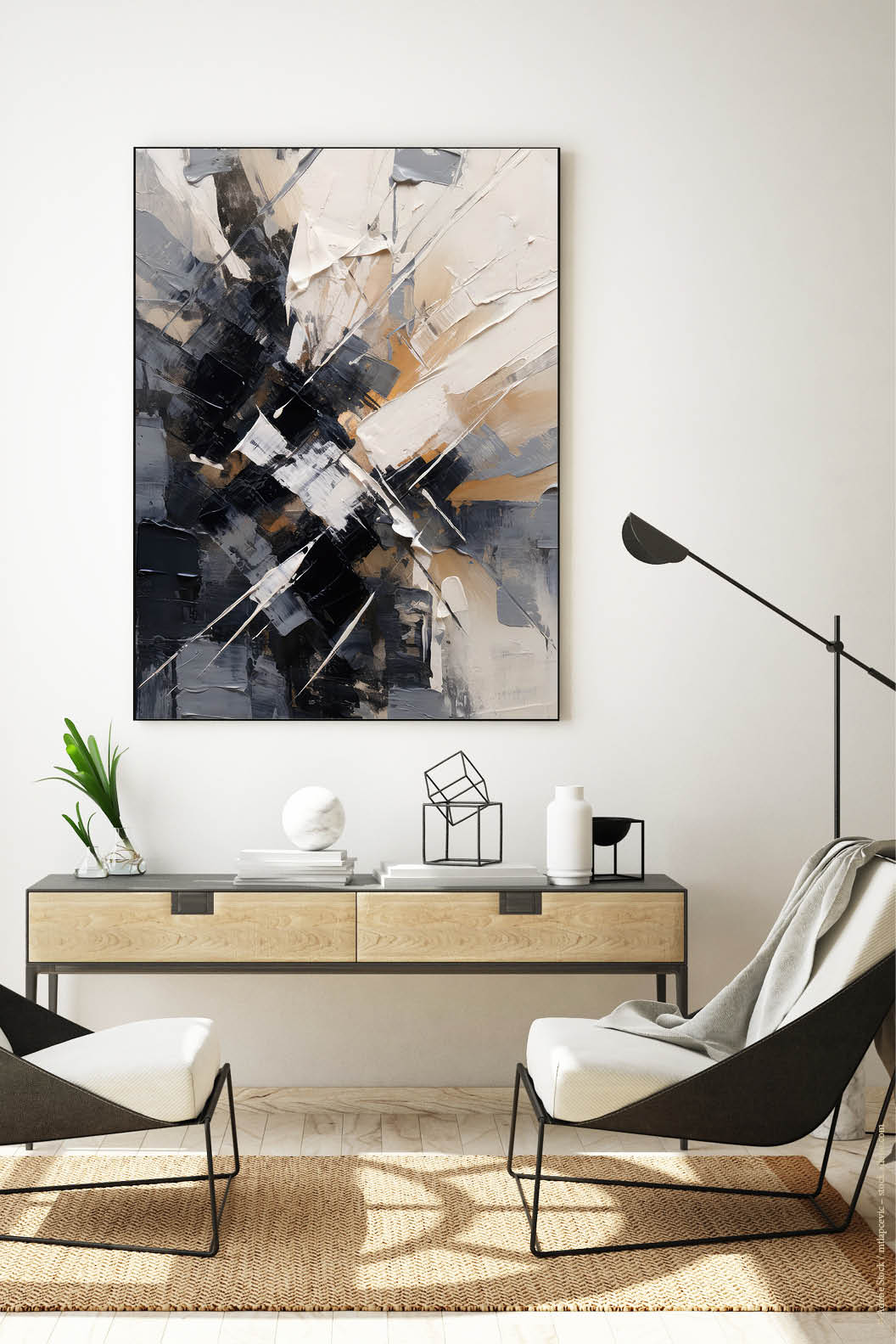 Am besten platzieren Sie das Akustikbild gegenüber oder hinter der Schallquelle. Typische Orte sind gegenüber oder hinter einem Schreib- oder Esstisch. Noch besser wirken mehrere Elemente an verschiedenen Wänden. Je besser die Platzierung, desto größer der Effekt – besonders, wenn nur ein Bild geplant ist.