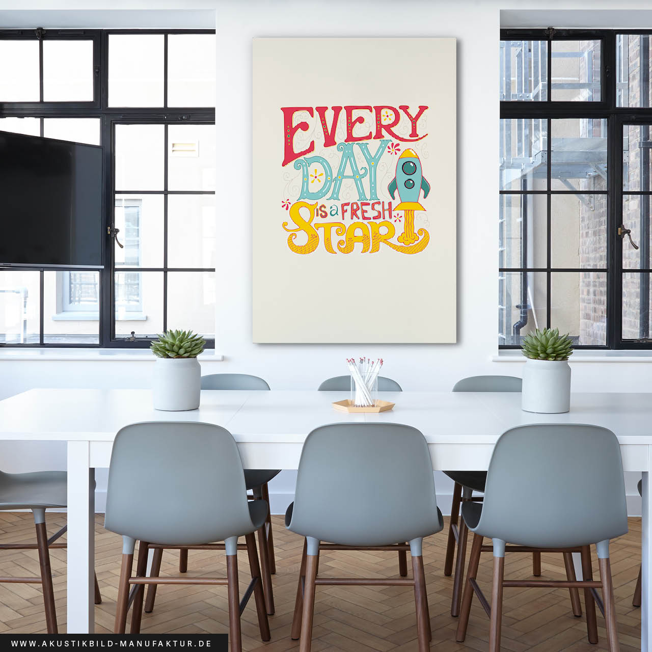 Sie sind hier: Start - Akustikbilder mit Sprüchen - Akustikbild Every Day Is A New Start – Beige