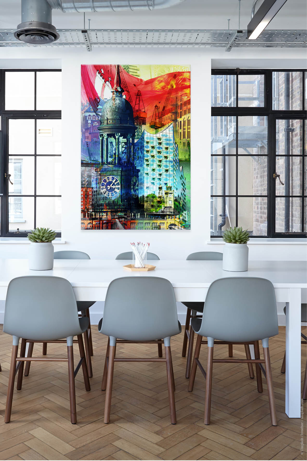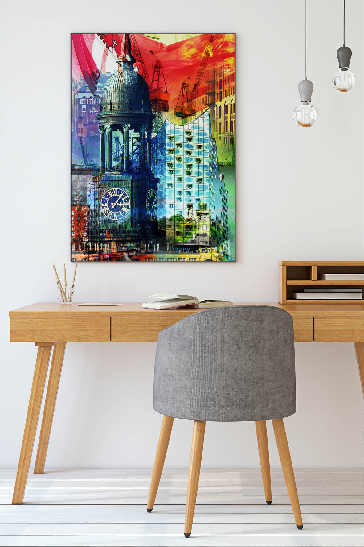 Sie sind hier: Start - Akustikbilder mit Städten und regionalen Motiven - Hamburg Collage Michel und Elphi