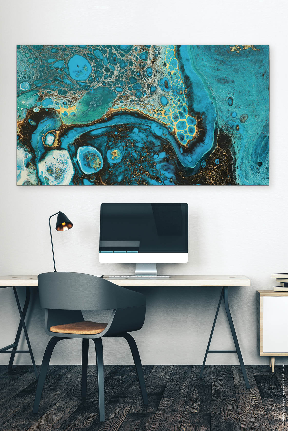 Am besten platzieren Sie das Akustikbild gegenüber oder hinter der Schallquelle. Typische Orte sind gegenüber oder hinter einem Schreib- oder Esstisch. Noch besser wirken mehrere Elemente an verschiedenen Wänden. Je besser die Platzierung, desto größer der Effekt – besonders, wenn nur ein Bild geplant ist.