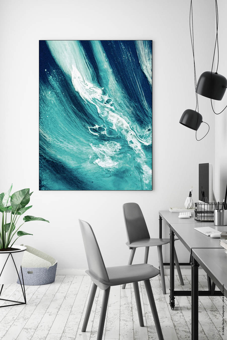 Am besten platzieren Sie das Akustikbild gegenüber oder hinter der Schallquelle. Typische Orte sind gegenüber oder hinter einem Schreib- oder Esstisch. Noch besser wirken mehrere Elemente an verschiedenen Wänden. Je besser die Platzierung, desto größer der Effekt – besonders, wenn nur ein Bild geplant ist.