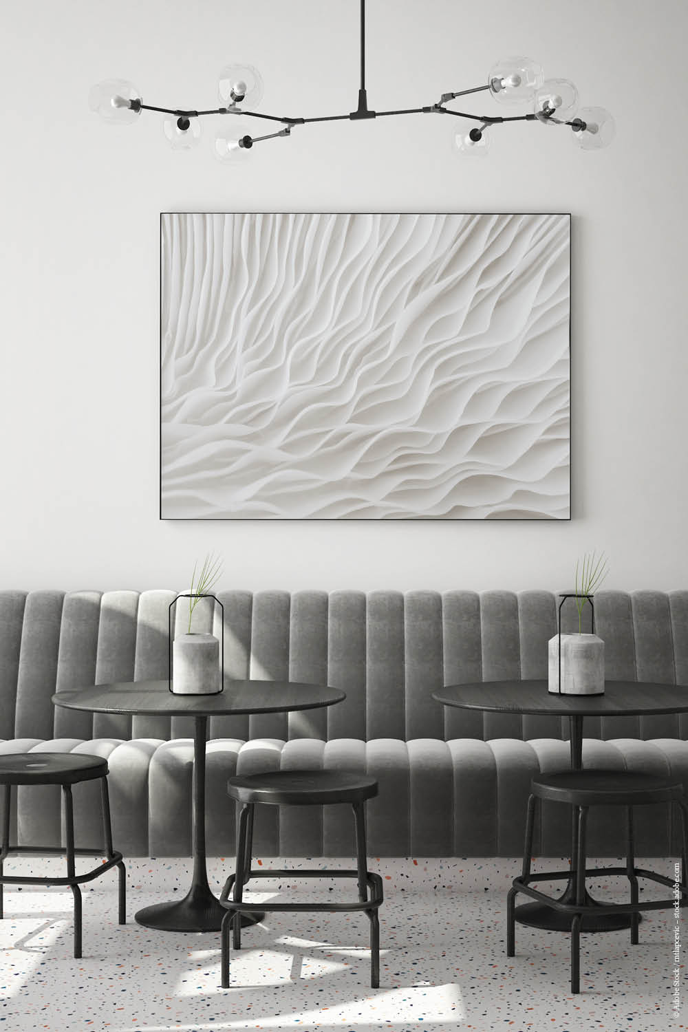 Am besten platzieren Sie das Akustikbild gegenüber oder hinter der Schallquelle. Typische Orte sind gegenüber oder hinter einem Schreib- oder Esstisch. Noch besser wirken mehrere Elemente an verschiedenen Wänden. Je besser die Platzierung, desto größer der Effekt – besonders, wenn nur ein Bild geplant ist.