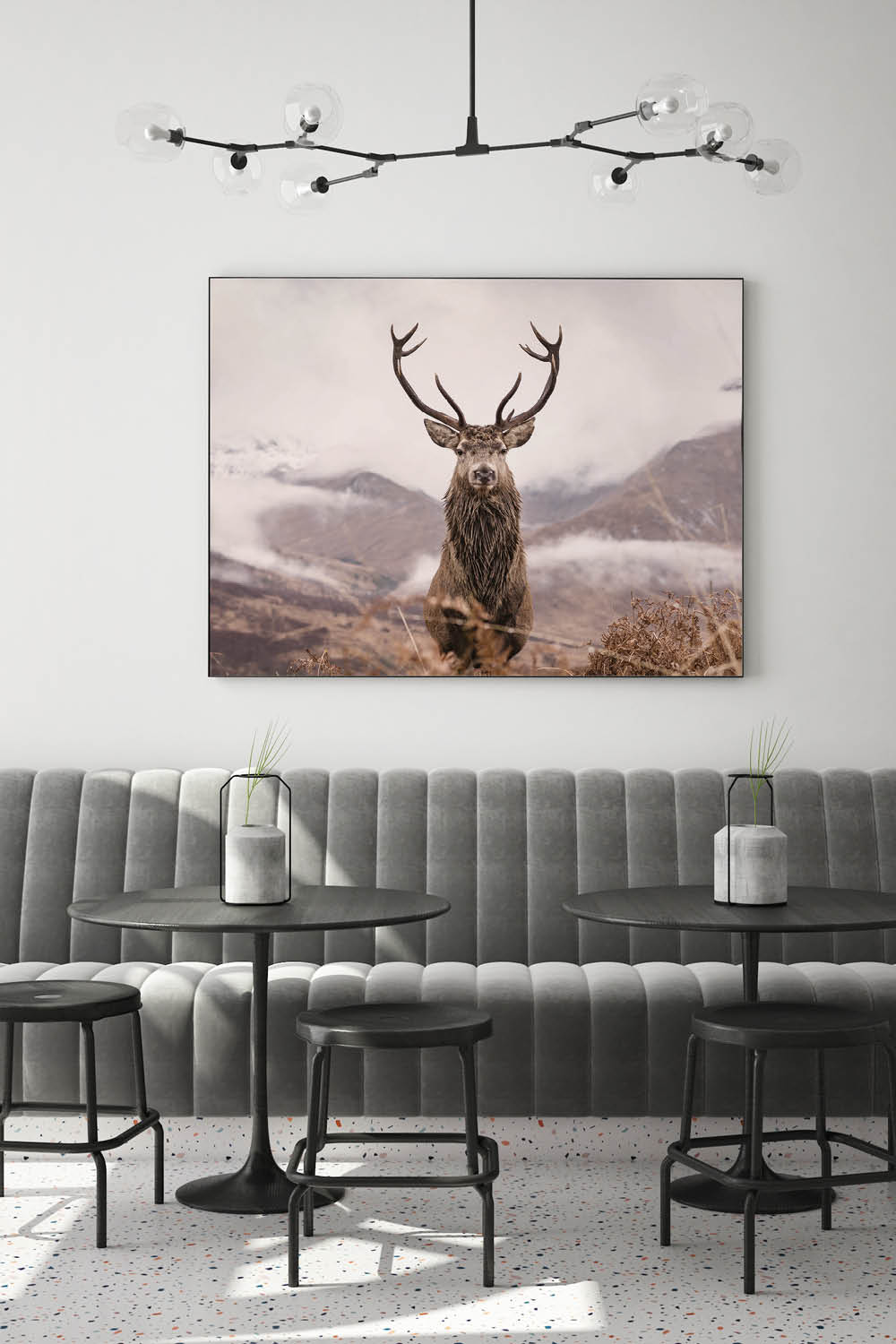 Am besten platzieren Sie das Akustikbild gegenüber oder hinter der Schallquelle. Typische Orte sind gegenüber oder hinter einem Schreib- oder Esstisch. Noch besser wirken mehrere Elemente an verschiedenen Wänden. Je besser die Platzierung, desto größer der Effekt – besonders, wenn nur ein Bild geplant ist.