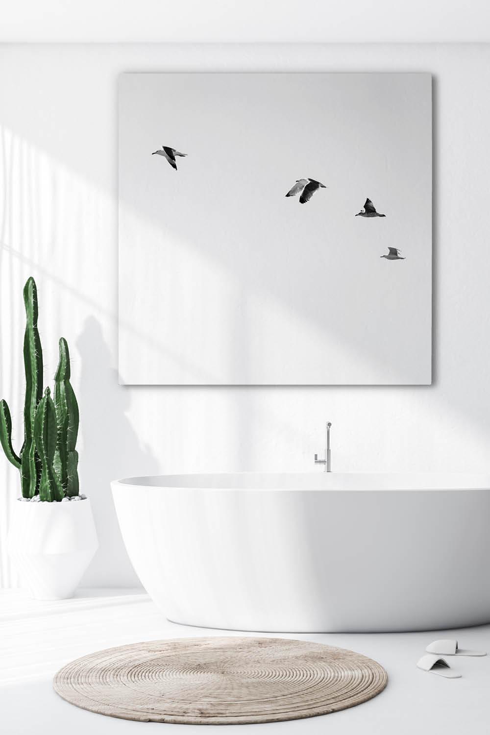 Einfaches Aufhängen wie ein klassisches Wandbild an 2 Haken. Sie erhalten hierfür von uns hochwertige Universaldübel und Schraubhaken.