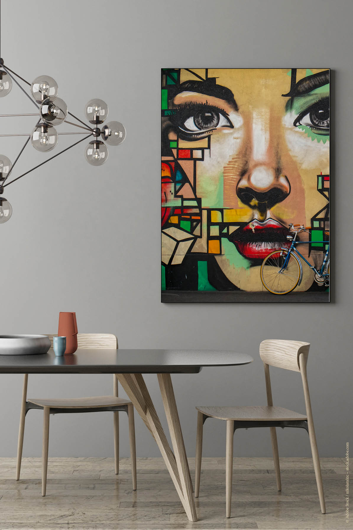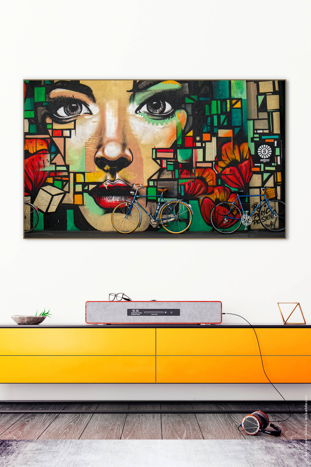 Sie sind hier: Akustikbilder mit Motiven » Akustikbild Streetart Frau mit Fahrrad