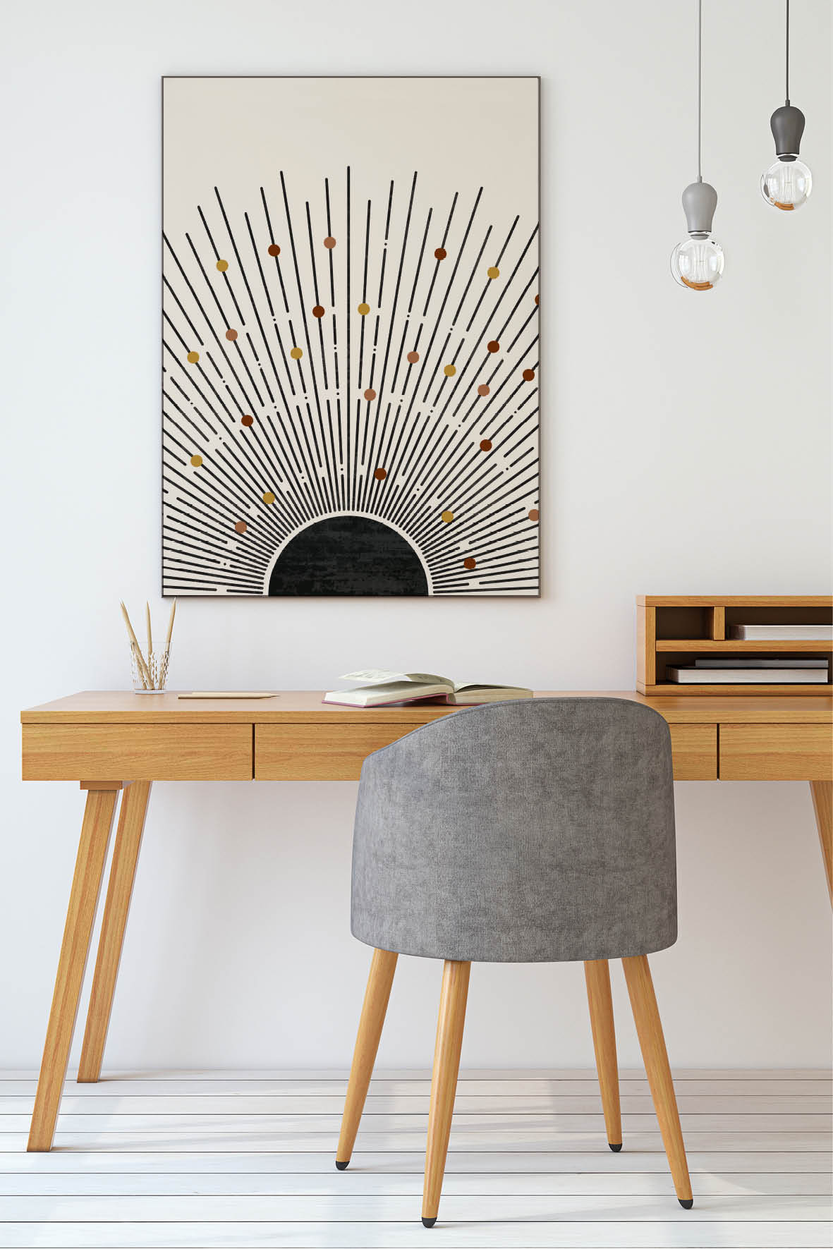 Am besten platzieren Sie das Akustikbild gegenüber oder hinter der Schallquelle. Typische Orte sind gegenüber oder hinter einem Schreib- oder Esstisch. Noch besser wirken mehrere Elemente an verschiedenen Wänden. Je besser die Platzierung, desto größer der Effekt – besonders, wenn nur ein Bild geplant ist.