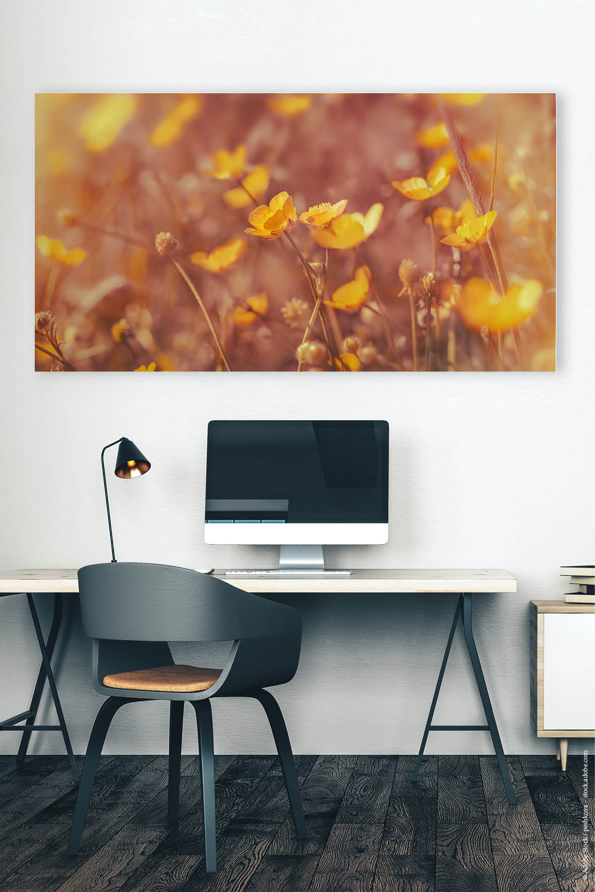Am besten platzieren Sie das Akustikbild gegenüber oder hinter der Schallquelle. Typische Orte sind gegenüber oder hinter einem Schreib- oder Esstisch. Noch besser wirken mehrere Elemente an verschiedenen Wänden. Je besser die Platzierung, desto größer der Effekt – besonders, wenn nur ein Bild geplant ist.