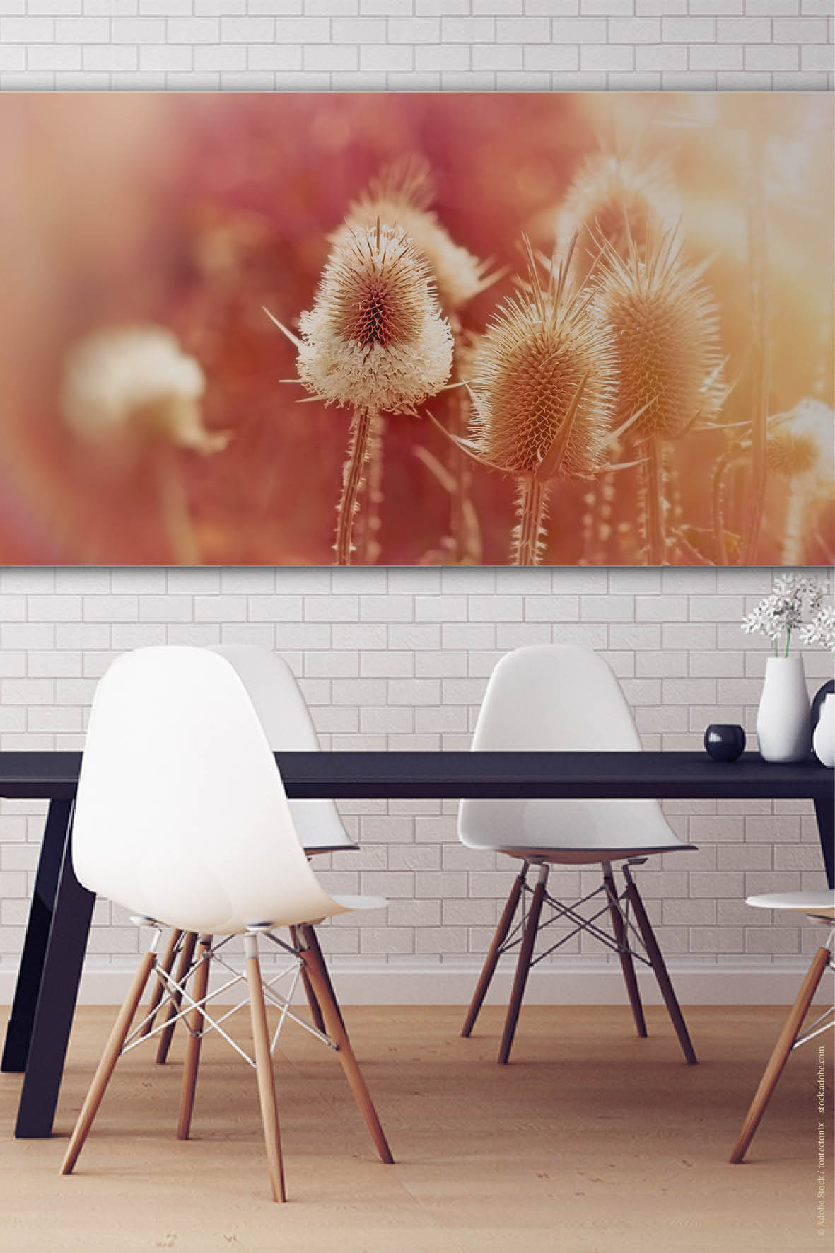 Einfaches Aufhängen wie ein klassisches Wandbild an 2 Haken. Sie erhalten hierfür von uns hochwertige Universaldübel und Schraubhaken.