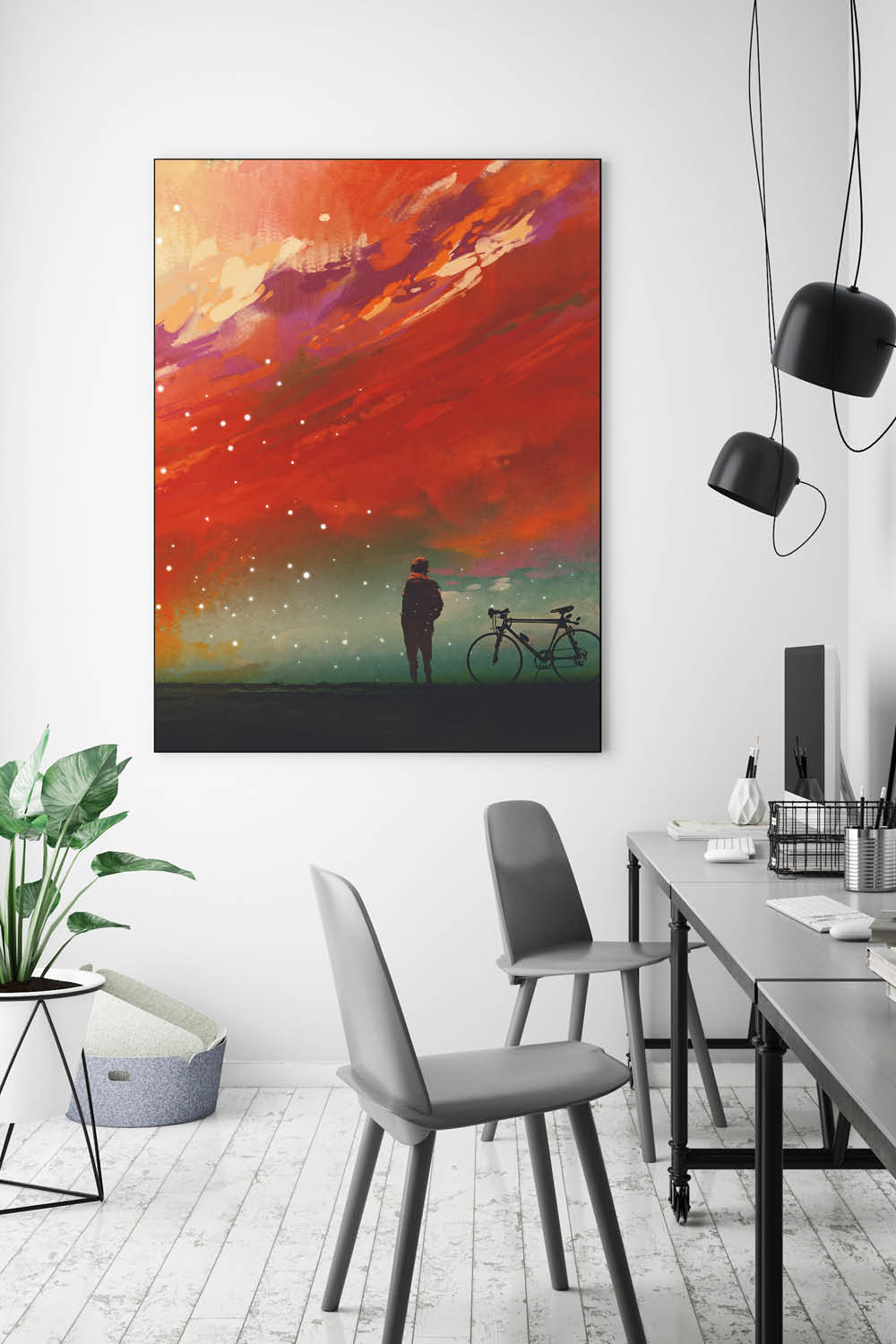 Am besten platzieren Sie das Akustikbild gegenüber oder hinter der Schallquelle. Typische Orte sind gegenüber oder hinter einem Schreib- oder Esstisch. Noch besser wirken mehrere Elemente an verschiedenen Wänden. Je besser die Platzierung, desto größer der Effekt – besonders, wenn nur ein Bild geplant ist.