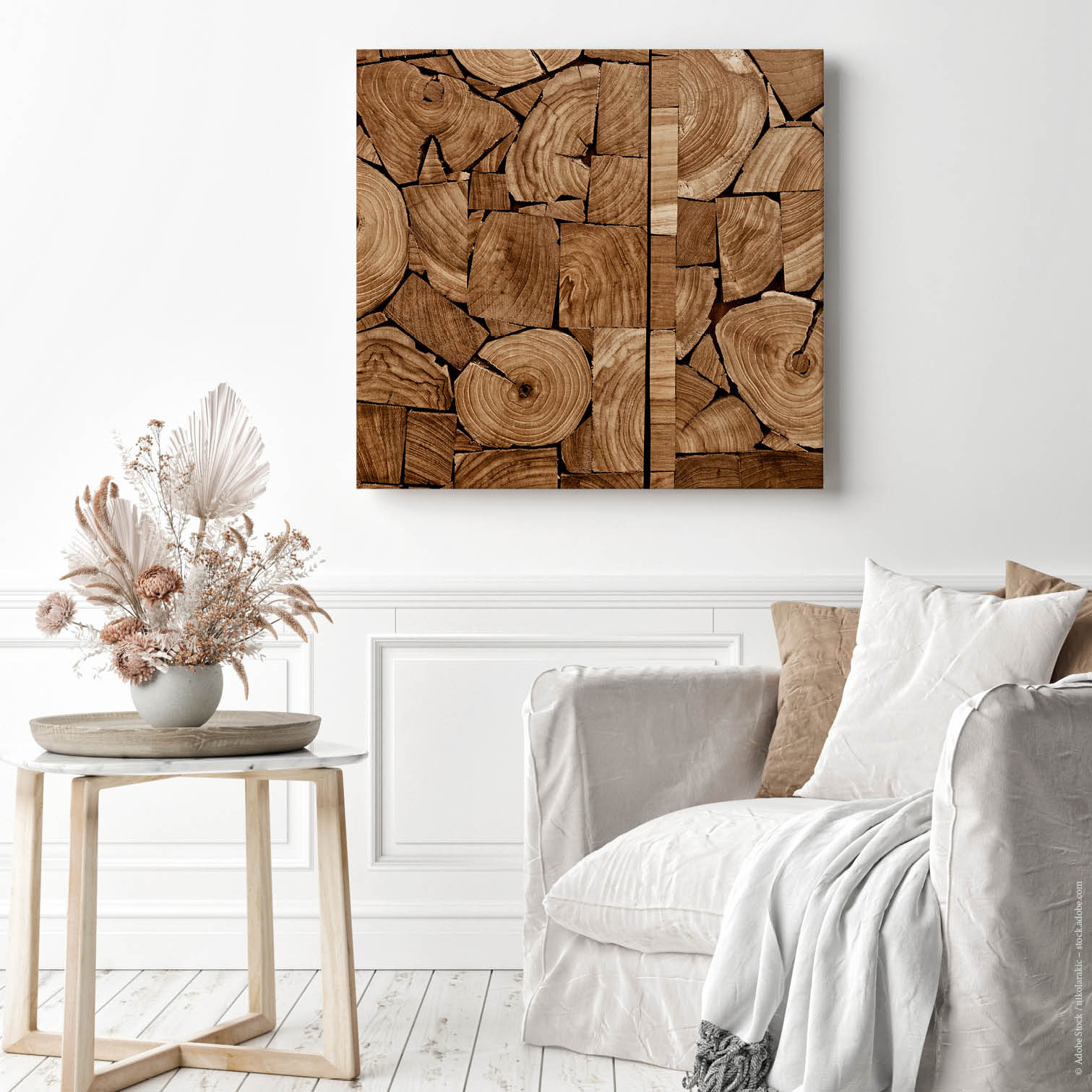 Einfaches Aufhängen wie ein klassisches Wandbild an 2 Haken. Sie erhalten hierfür von uns hochwertige Universaldübel und Schraubhaken.
