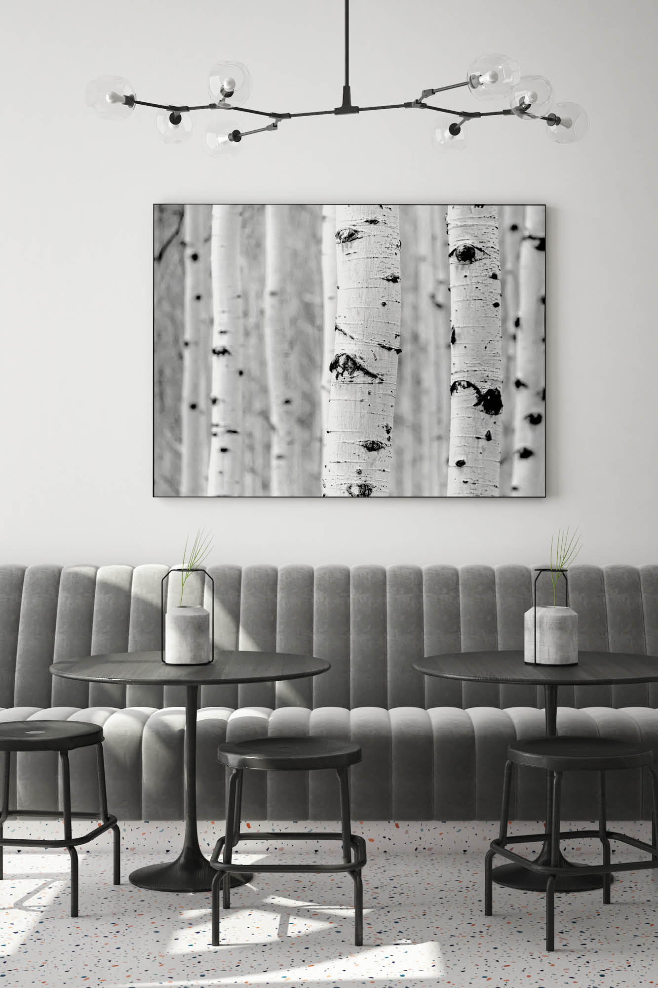 | Räume >35 qm | Kombinieren Sie mehrere Akustikbilder mit Deckensegeln oder Deckenplatten |