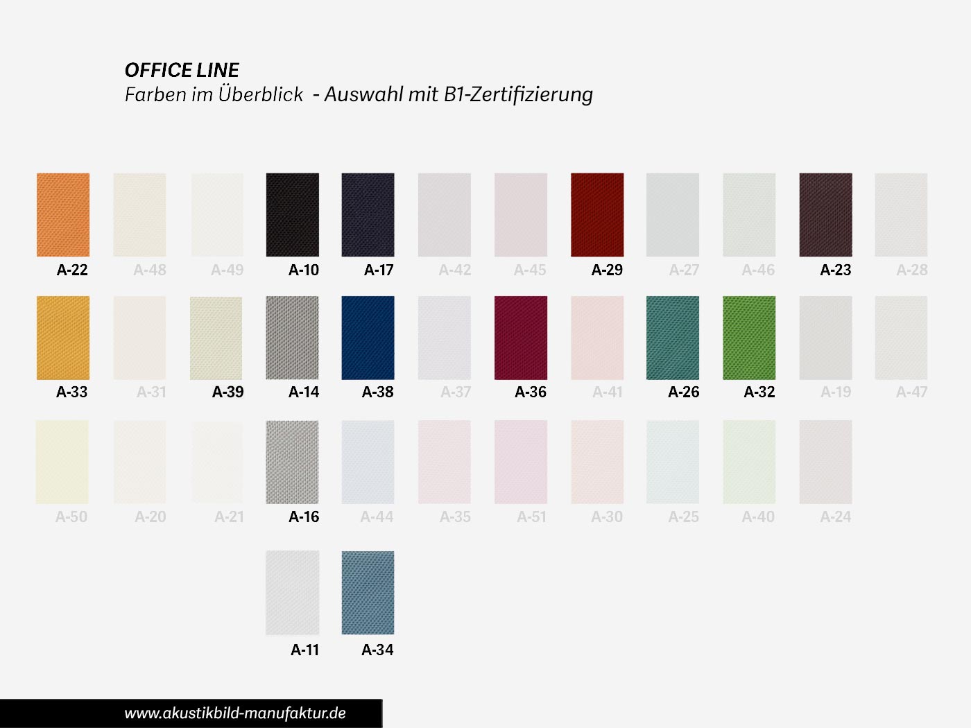 Ob es nun edle weiße Akustikkreise werden oder bunte Akustikkreise – Sie können die Farben jedes Kreises frei bestimmen. Eine Mindestabnahmemenge pro Farbe besteht nicht. Gerne senden wir Ihnen ein → Stoffmuster zu, so dass Sie Farbe bei sich vor Ort ausprobieren können.