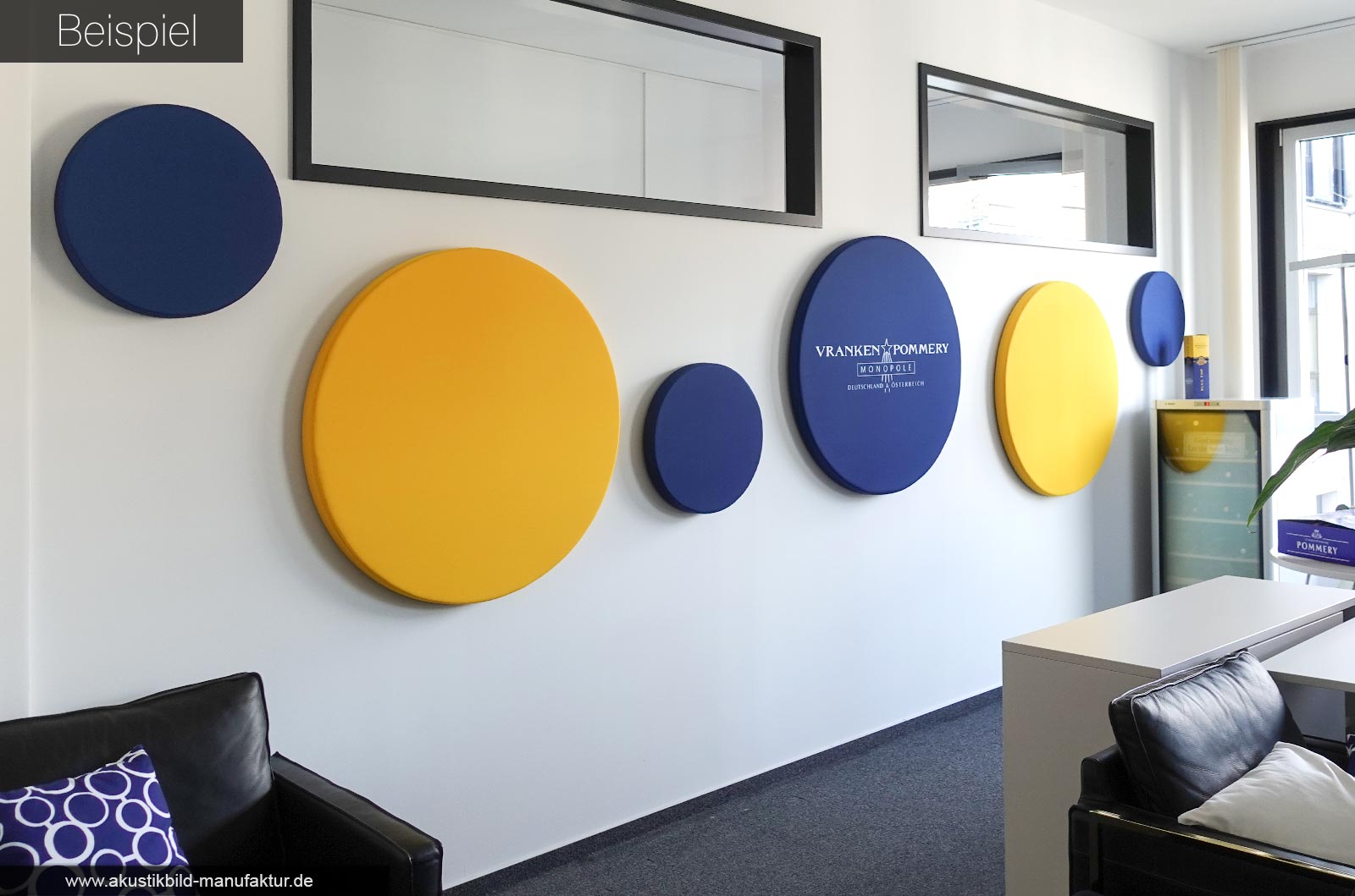 Typische Einsatzorte für Akustikkreise als Wandabsorber oder Deckenabsorber sind