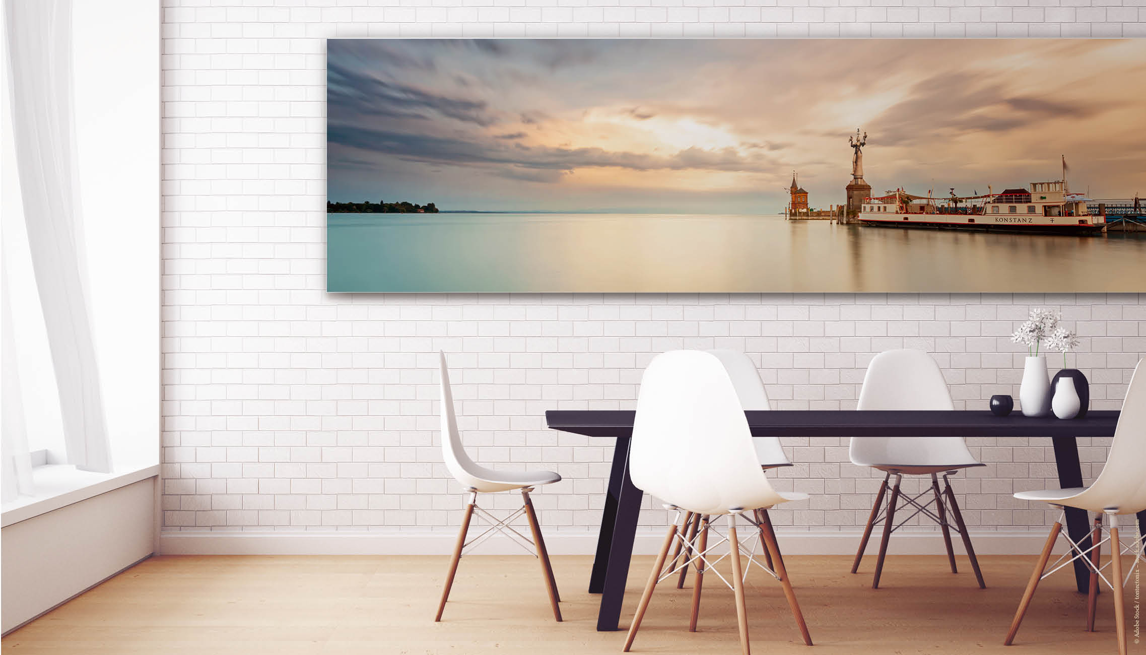 Einfaches Aufhängen wie ein klassisches Wandbild an 2 Haken. Sie erhalten hierfür von uns hochwertige Universaldübel und Schraubhaken.