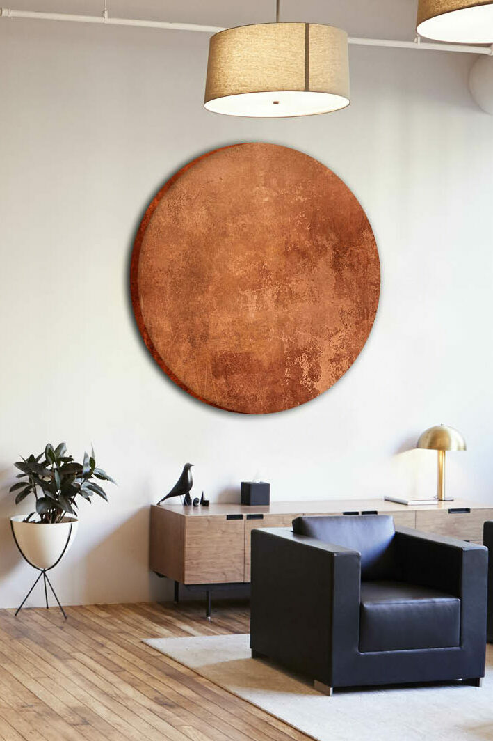 Sie sind hier: Akustikbilder mit Motiven » Akustikbilder mit abstrakten Motiven » Rundes Akustikbild Abstrakt Kupfer