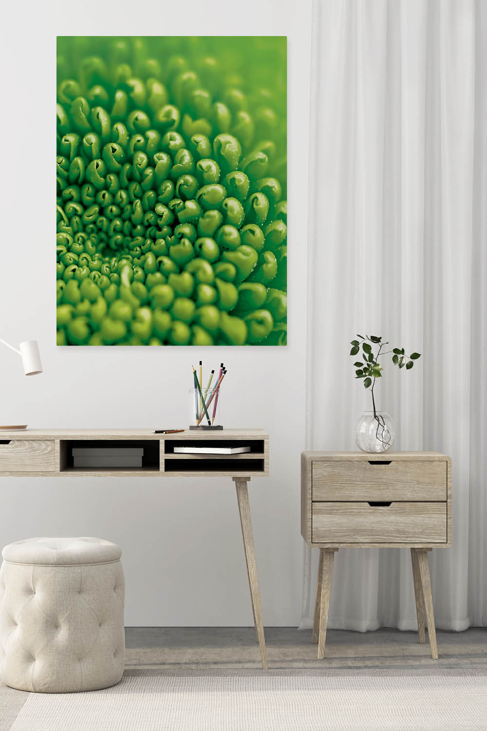 Am besten platzieren Sie das Akustikbild gegenüber oder hinter der Schallquelle. Typische Orte sind gegenüber oder hinter einem Schreib- oder Esstisch. Noch besser wirken mehrere Elemente an verschiedenen Wänden. Je besser die Platzierung, desto größer der Effekt – besonders, wenn nur ein Bild geplant ist.