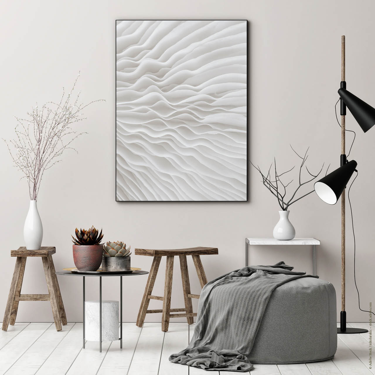 Am besten platzieren Sie das Akustikbild gegenüber oder hinter der Schallquelle. Typische Orte sind gegenüber oder hinter einem Schreib- oder Esstisch. Noch besser wirken mehrere Elemente an verschiedenen Wänden. Je besser die Platzierung, desto größer der Effekt – besonders, wenn nur ein Bild geplant ist.