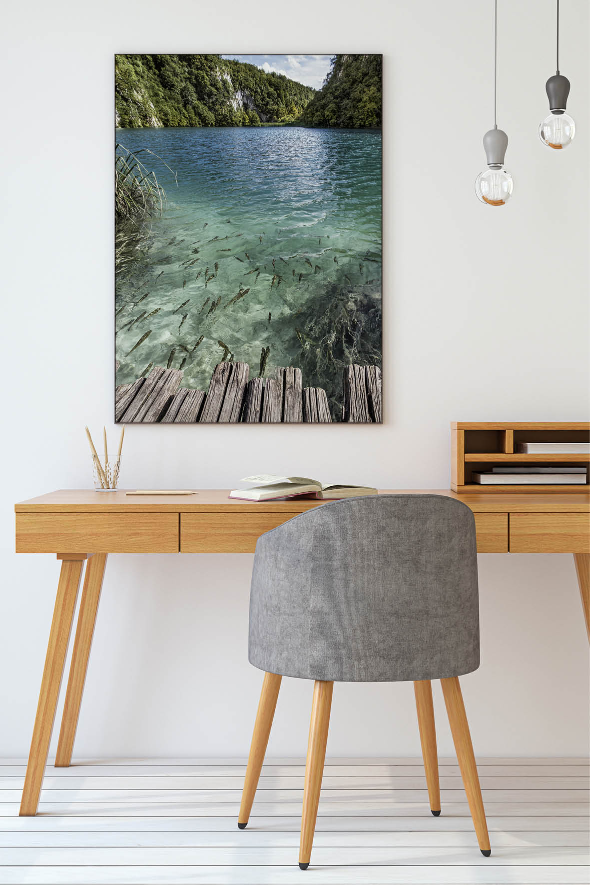Am besten platzieren Sie das Akustikbild gegenüber oder hinter der Schallquelle. Typische Orte sind gegenüber oder hinter einem Schreib- oder Esstisch. Noch besser wirken mehrere Elemente an verschiedenen Wänden. Je besser die Platzierung, desto größer der Effekt – besonders, wenn nur ein Bild geplant ist.