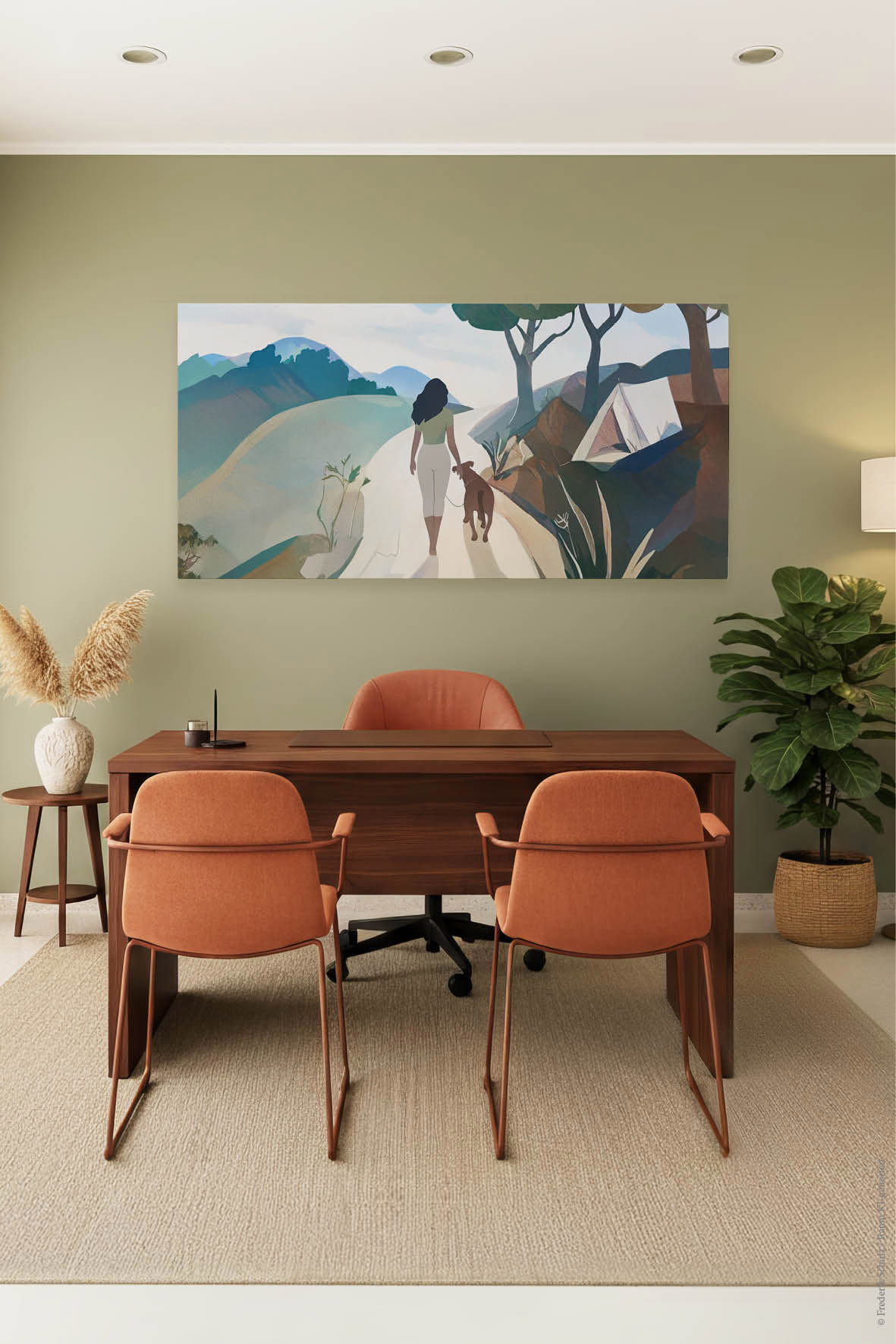 Am besten platzieren Sie das Akustikbild gegenüber oder hinter der Schallquelle. Typische Orte sind gegenüber oder hinter einem Schreib- oder Esstisch. Noch besser wirken mehrere Elemente an verschiedenen Wänden. Je besser die Platzierung, desto größer der Effekt – besonders, wenn nur ein Bild geplant ist.