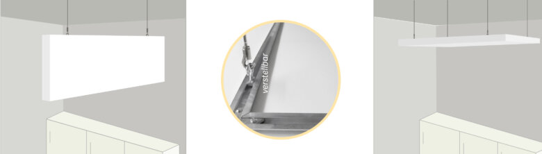 2. Montage der Schallabsorberplatte mittels Drahtseilabhängung (Decke)
