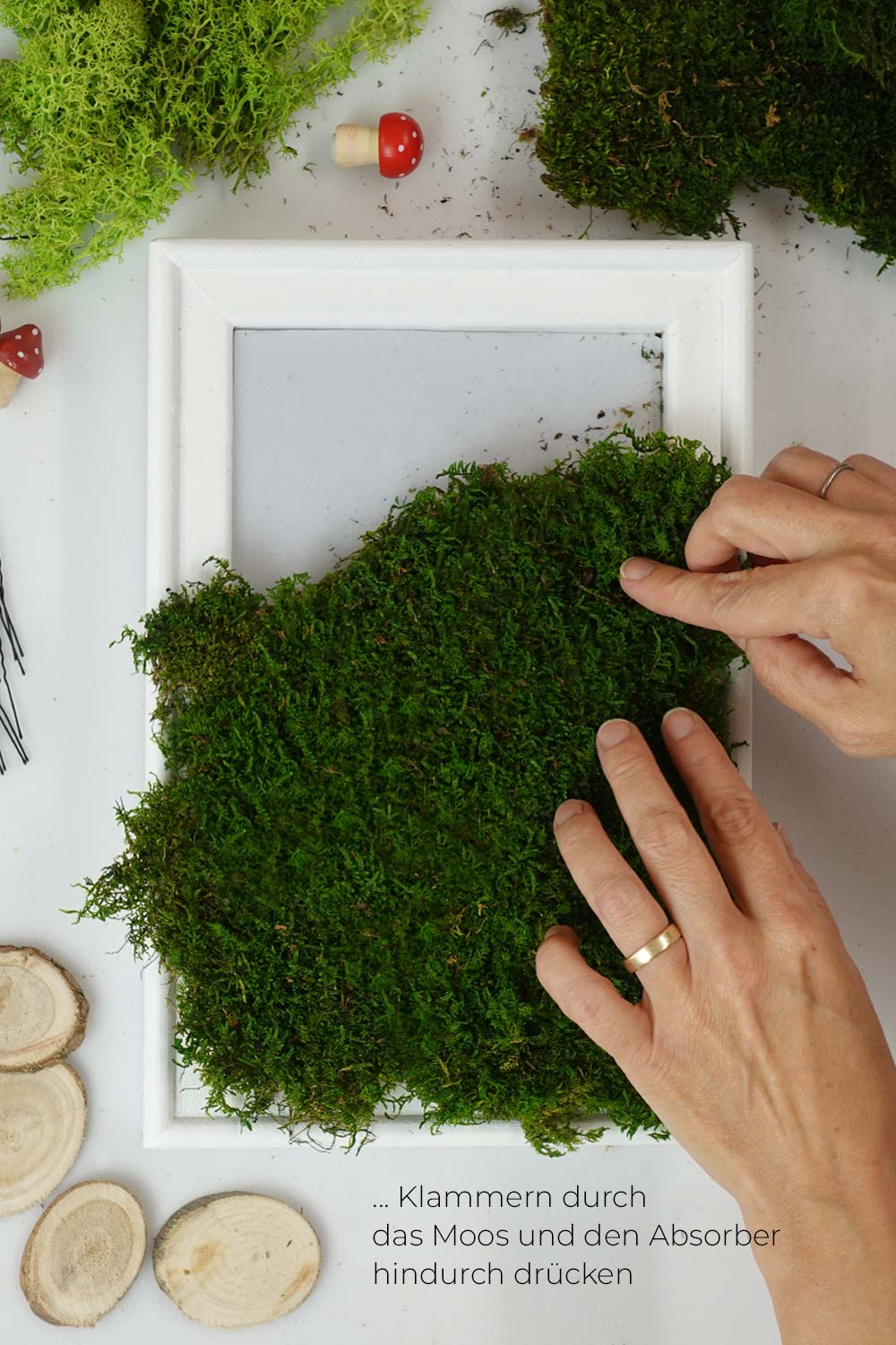 Moosbild DIY Schritt 7 Klammern verankern