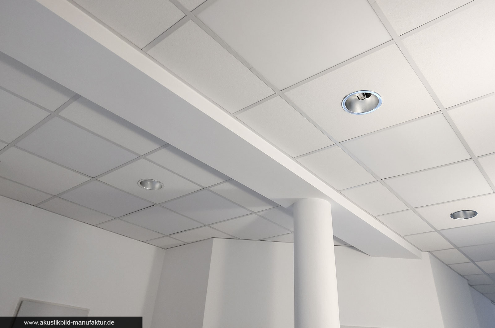 Weiße oder lichtgraue Akustikplatten aus Basotect können Sie bei der Akustikbild-Manufaktur in passenden Größen für Rasterdecken in den Ausführungen “Mit Magneten“, “Zum Einlegen” oder “Zum Ankleben” bestellen.